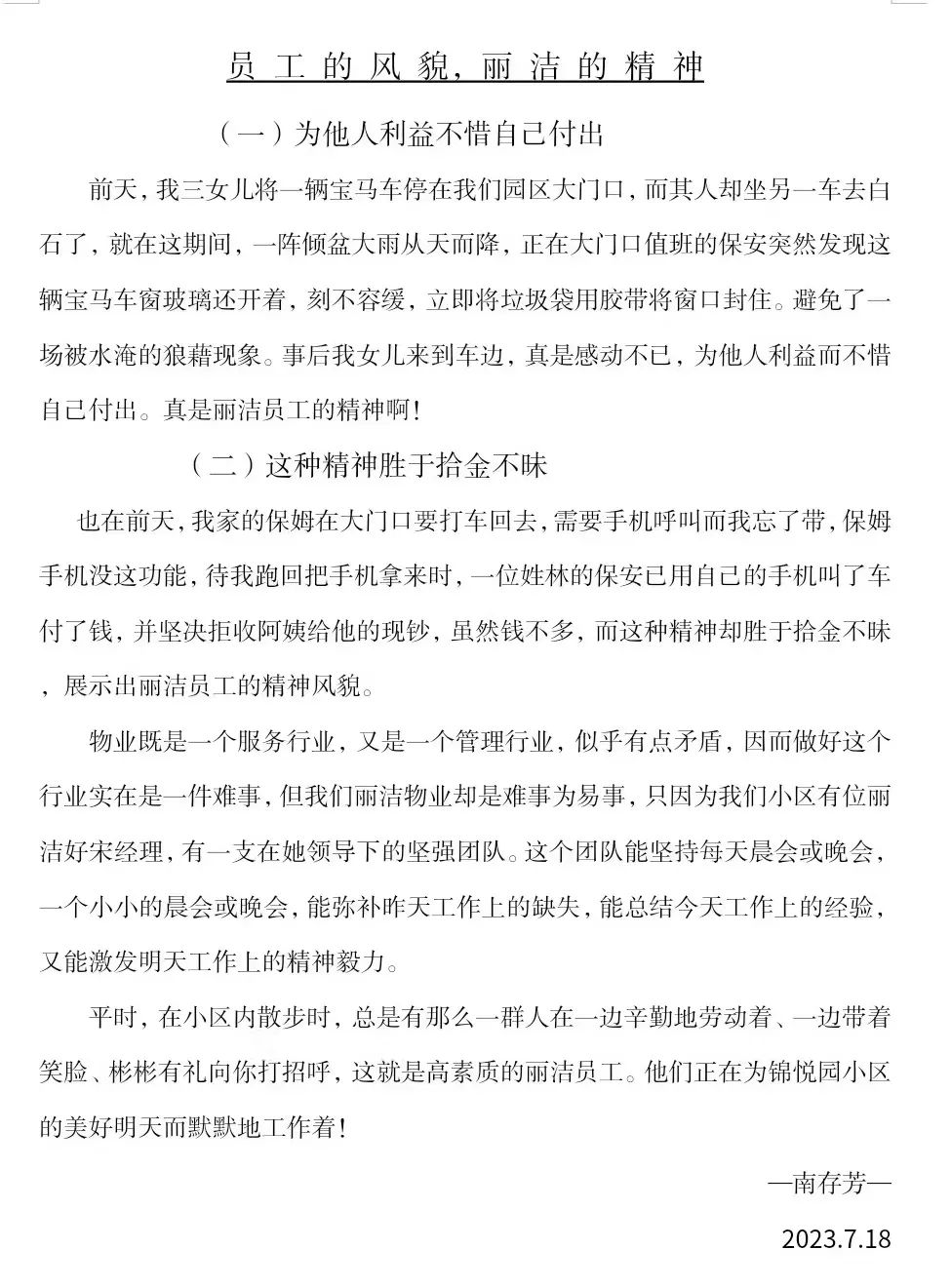 這是一封來自業主的感謝信,字字真切,句句肺腑,紙短情長,道不盡物業與業主之間的暖心故事。